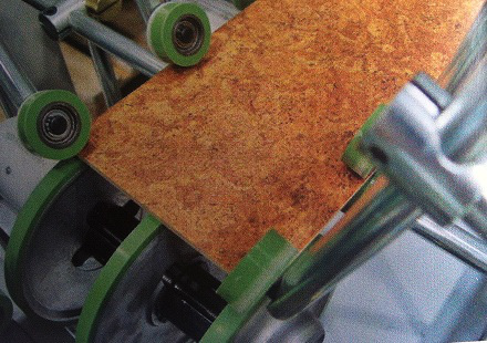 C.把卷狀型覆膜加工材料安裝在帶有自動裝置的氣脹軸上,通過導(dǎo)膜輥、 涂膠裝置、刮刀系統(tǒng)、手柄調(diào)節(jié)裝置、壓膜輥,但涂膠裝置、送料系統(tǒng)、刮刀系統(tǒng)必須同時運行工作與自動電子控制齒輪泵運行供膠,使包覆生產(chǎn)在不斷變化速度 時,乃能精確控制供膠運行,確保供膠裝置涂膠量、使涂膠系統(tǒng)涂膠均勻、無堆膠、不起泡、省膠效果好,確保表面高速覆貼加工效率。